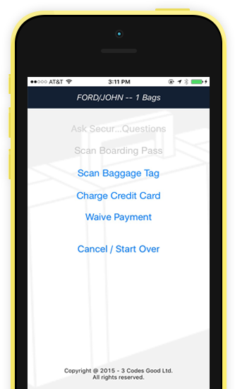 Check bags and collect Excess Baggage Fees any where you need to (check-in, central search, boarding gate, aircraft door.)